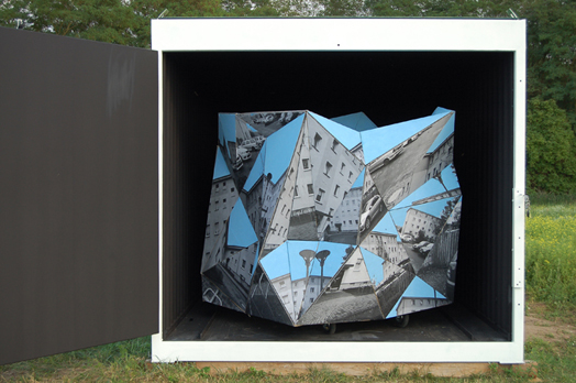 Der zerknüllte Kubus von Susken Rosenthal befasst sich mit dem Thema Luftspiegelung.